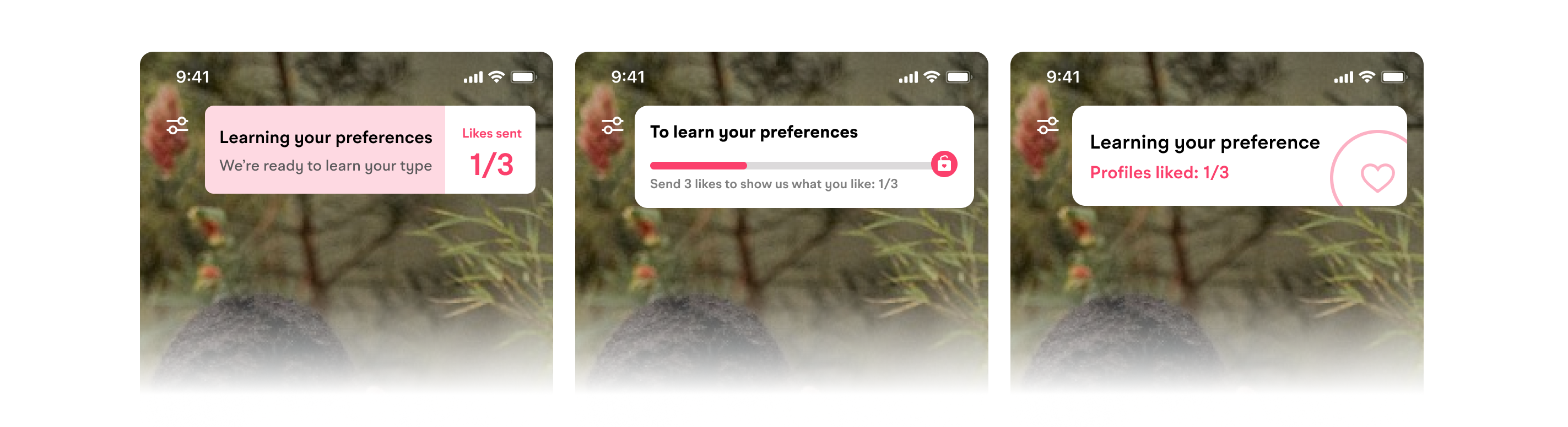 Educating users on how sending likes helps refine their profile recommendations could motivate them to engage more.